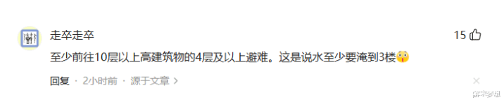 至少前往10层以上高建筑物的4层及以上避难。这是说水至少要淹到3楼